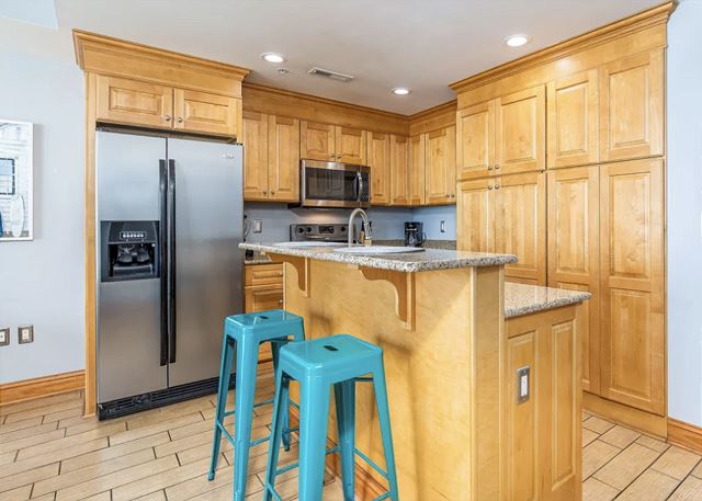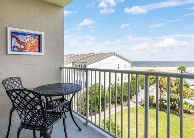Breathtaking ocean views and perfect location! Enjoy amazing views of the ocean from your private balcony in Beach Club 132. This third (top) floor, two bedroom, two bath condo offers an expansive view of the property out to the Atlantic Ocean. Relax in your open living room with sleeper sofa, flat screen TV, dining table seating for four, and bar seating for two. The fully stocked kitchen has granite counters, stainless steel appliances, and a stack-able washer and dryer. The primary bedroom has a king bed, flat screen TV, and an attached bath with oversized walk-in shower. The second bedroom has a queen bed, flat screen TV, and an attached bath with tub/shower combo which is also accessible from the hall. This condo does allow pets.