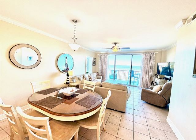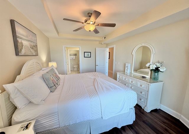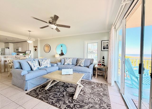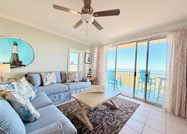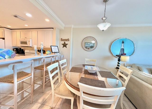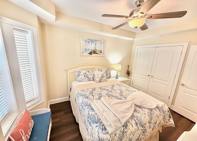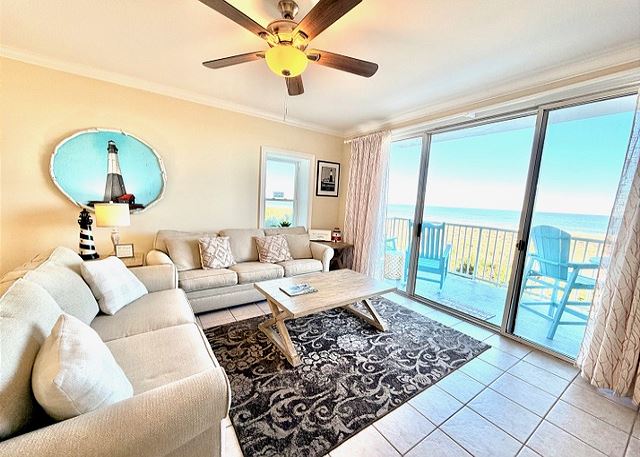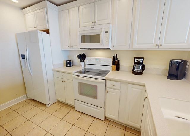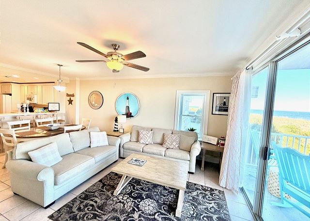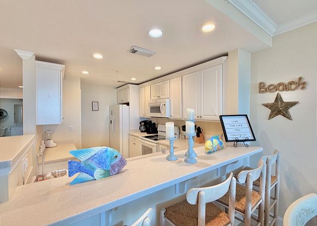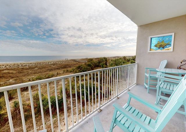 "The people along the sand all turn and look one way, they turn their backs to the land and look at the sea all day". Robert Frost may not have visited Tybee Island, but had he done so, he most certainly would have chosen this two-bedroom, two bath oceanfront condo! The view is spectacular from the private balconies off of the living area and master bedroom. In the master bedroom, you’ll languish on the king-sized bed and enjoy all of the amenities of the en-suite master bath. The second bedroom is dominated by a fluffy queen-sized bed, and is just steps away from the second full bathroom. The full kitchen has pristine white cabinetry with matching appliances and looks out into the bright and cozy living room. From there, step out onto your private balcony and enjoy the view, for though you, “cannot look out far, and cannot look in deep, when was that ever a bar to any watch we keep”?