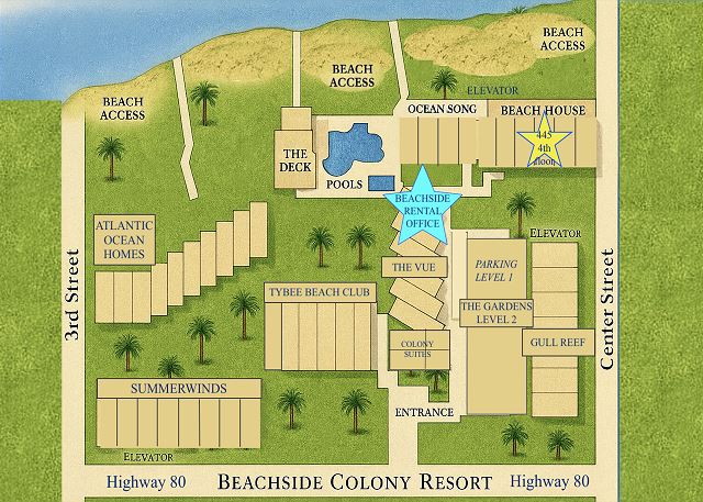 Beachside Colony Resort & Vacation Rentals offers the only on-site rental office on the island, open 7 days a week, and ready to help you with any information or tour booking that you need. Our resort is located on the beach, right in the middle of Tybee Island, a spot that puts it one mile from the pier, the hub of the island’s shopping and nightlife, and one mile from the Tybee Light Station, one of only 7 colonial-era lighthouses still in use in America. Directly across the street is Tybee's Memorial Park and our YMCA. This park features tennis, volleyball, basketball, and an amazing playground for kids of all ages as well as picnic and grill areas which can host small to large family gatherings. The island's library is also just across the street.