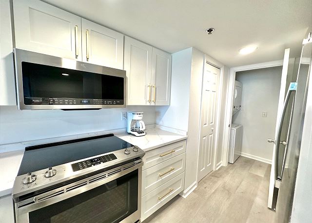 All of our condos have elevator access. Two assigned parking spaces are available for this condo. located under the building. This condo also offers washer and dryer, full kitchen with all full size appliances, linens, private WiFi connection, and cable.